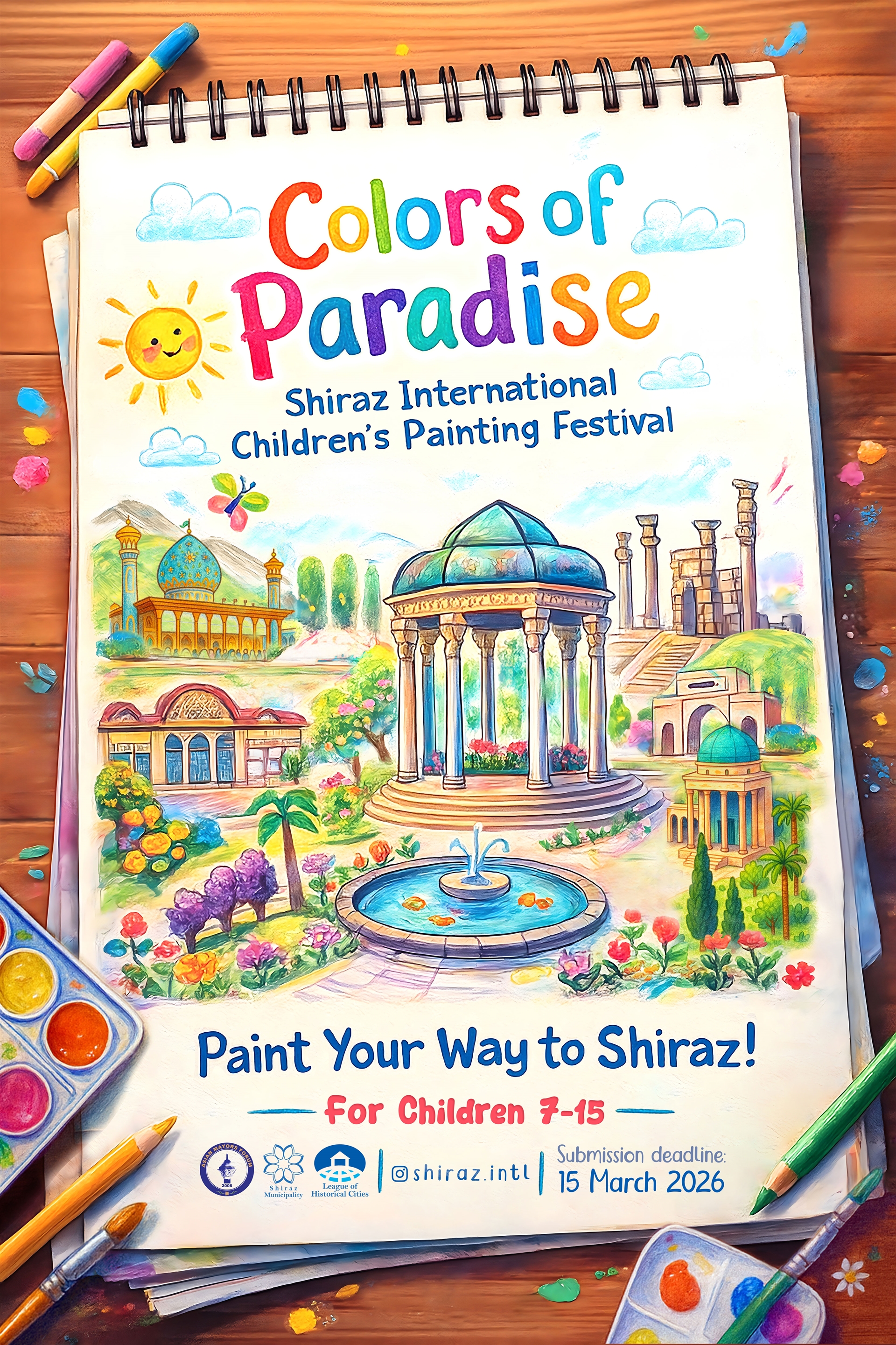 The Colors of Paradise 2026 – International Children’s Painting Festival invites children and teenagers aged 7–15 from around the world to participate in a free international art competition celebrating the cultural heritage of Shiraz and participants’ own cities.